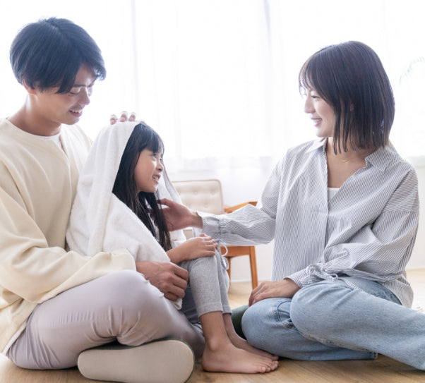 このタオルは、洗うたびにふっくら膨らみ、最初のふんわり感をさらに超える柔らかさへと変わっていきます。まるで大切な人が日々成長し、強く優しくなっていく様子を見守るように、このタオルも洗濯のたびに豊かさが増していきます。毎日の生活の中で、長く愛用してもらえる柔らかさと使い心地を実感していただけます。