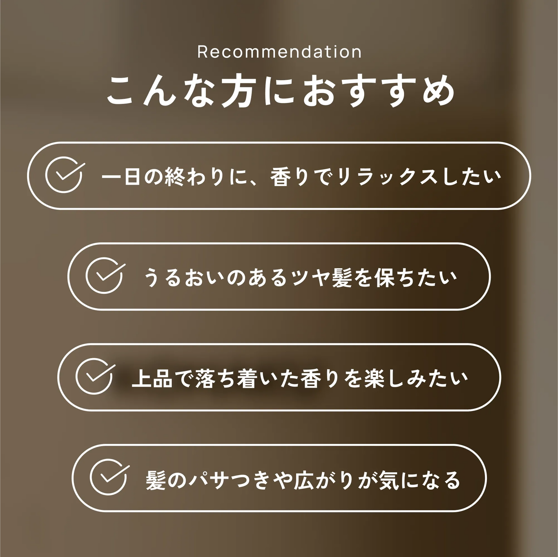 洗うたびにCMCを整え、髪の芯からやわらかさを取り戻すこのシャンプーは、指通りの良い、光をまとったような上質な髪へ導きます。