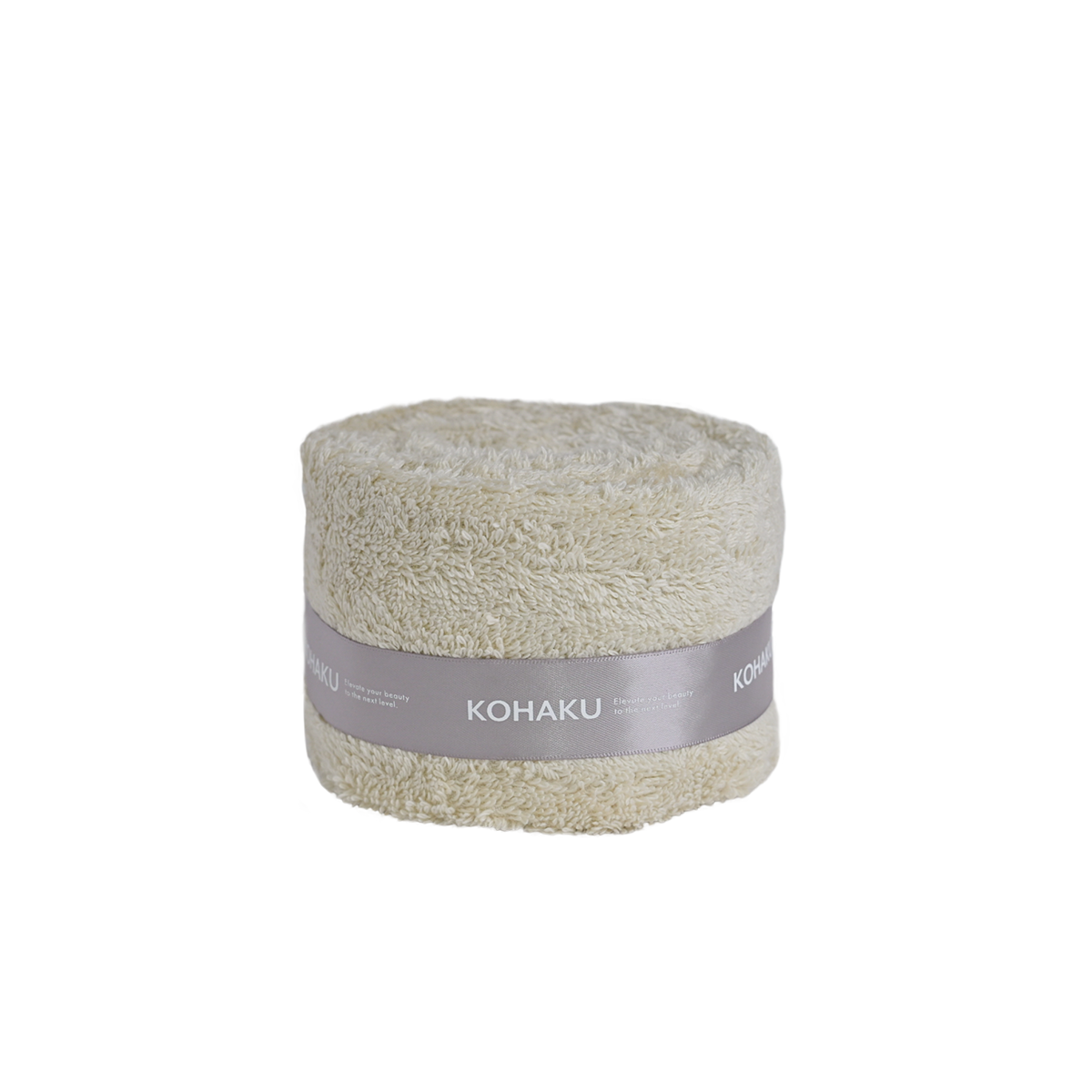 やわらかな肌ざわりと高い吸水性を備えたヘアタオル。洗うたびにふんわりとした心地よさが続き、使うほどにやさしい風合いを楽しめます。通常のタオルは長さが80cmに対しKOHAKUタオルは100cmありますので髪の長い方でも十分な設計になっています。スーパーゼロは空気を含む糸なので速乾性にも優れており、そのままバスタオルとしてもご利用することができます。ご自宅用はもちろん、ギフトにもおすすめです。